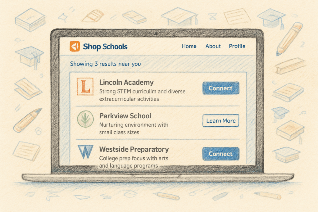 Shop Schools is a free service for families. We’ve built relationships with a wide variety of schools—public, private, charter, and specialty programs—so we can connect you directly with the right options.